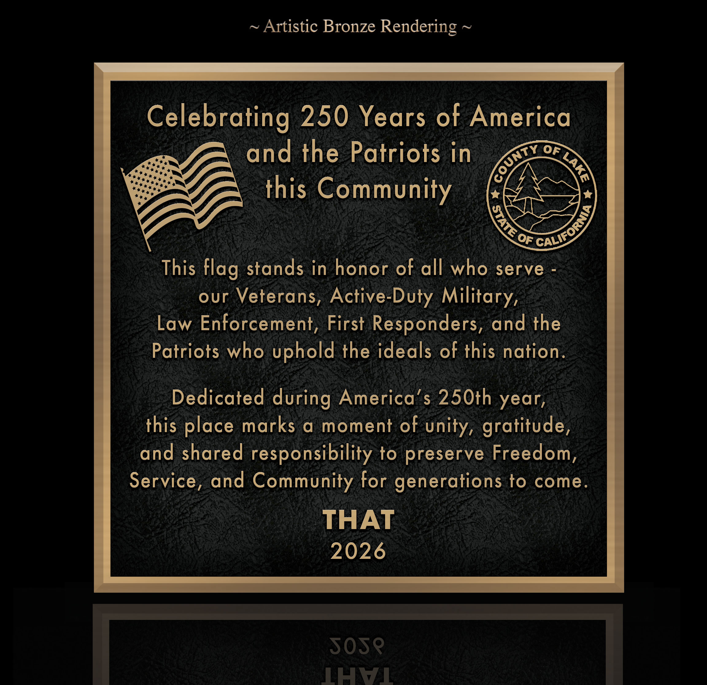Dedicated during America's 250th year, this place marks a moment of unity, gratitude, and shared responsibility to preserve Freedom, Service, and Community for generations to come.